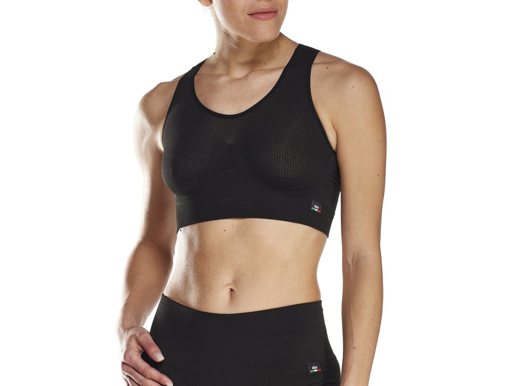 Bezešvá funkční podprsenka SIXS Carbon Underwear®. Podprsenka je velmi prodyšná, lehká, rychleschnoucí a zajišťuje maximální kontrola a regulaci pocení. Antibakteriální tkanina zabraňuje vzniku nepříjemných pachů. Přirozeně a elegantně kopíruje ženské tvary a umožňuje neomezený pohyb. Tato podprsenka, navržená s péčí a vášní, bude vaším dokonalým společníkem pro každodenní dobrodružství, ať už jste na kole, na trati, v posilovně nebo prostě v pohybu v každodenním životě. Podprsenka je vyrobena z technické "celoroční" tkaniny v novém, na dotek neuvěřitelně jemném složení, nabízí výjimečnou prodyšnost a účinnou regulaci vlhkosti, takže vás udrží v chladu a suchu za každé situace. Podprsenka F RG V3 bude zkrátka vaší novou nejlepší kamarádkou. Díky vysoce kvalitním materiálům použitým při výrobě je podprsenka F RG V3 neuvěřitelně pohodlná, měkká na dotek a obklopí vaše tělo pohlazením, díky kterému se budete cítit hýčkaná po celý den. Zadní díl je delší než u předchozího modelu, nabízí dodatečné zahalení a větší oporu, což vám zajistí pocit bezpečí a pohodlí při jak fyzické aktivitě, tak i ve volném čase. I přes vylepšenou oporu je podprsenka F RG V3 neuvěřitelně lehká, což vám umožní volný pohyb bez omezení v každé situaci. Ženský, rafinovaný a čistý design podprsenky je navržen tak, aby zdůraznil vaše tvary, v decentním, elegantním stylu a střihu, díky němuž se budete cítit sebejistě za všech okolností. Tkanina má patentovaný textilní steh, který umožňuje výjimečné odvádění potu a zabraňuje tomu, aby zůstával v kontaktu s pokožkou. Schopnost tkaniny udržet tělo v suchu je zásadní pro účinnou termoregulaci. Podprsenka je bezešvá, beze švů na bocích, což snižuje podráždění a zlepšuje pružnost tkaniny pro vynikající pohodlí. Ergonomický střih zajišťuje dokonalé přilnutí k tělu, bez nepohodlí a odírání. Výrobky značky SIXS jsou vyráběny výhradně a bez výjimky v Itálii. Od výroby surovin, přes tkaninu, až po šití a balení. Vše je MADE IN ITALY. Pro údržbu a prodloužení životnosti doporučujeme použití originálního pracího gelu Resolvwear Fragrance nebo Resolvwear Active. Při praní a údržbě dodržujte pokyny výrobce dle symbolů údržby na cedulkách oděvů.Doplňkové parametry